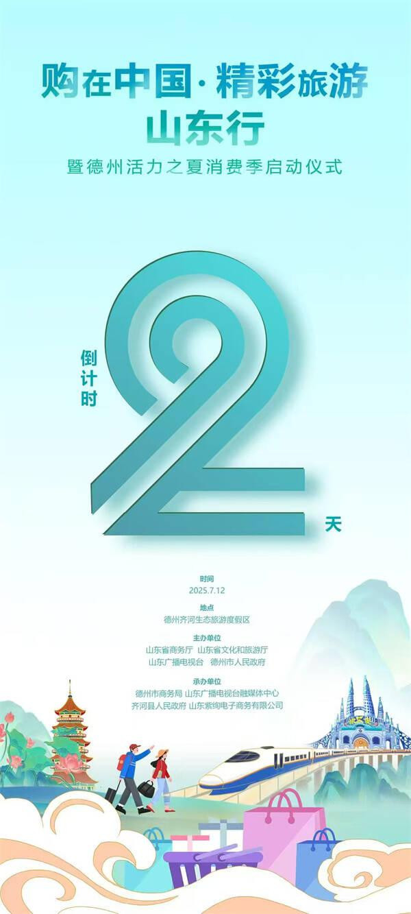 由省商务厅、省文化和旅游厅举办的“购在中国·精彩旅游山东行”系列活动将在全省陆续启动。省商务厅、山东广播电视台、德州市人民政府将于7月12日联合举办“购在中国——山东站暨德州活力之夏消费季启动仪式”。